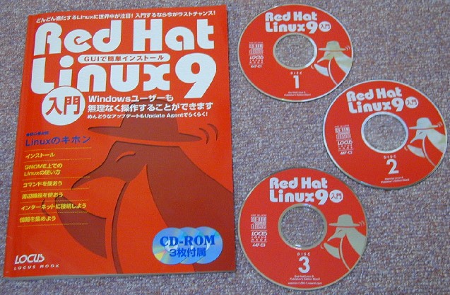 実は、LINUXのCDが綴じ込みになっている本(ローカス社のRed Hat Linux9)を昨年(2003年)買ってきていた。