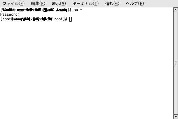| コマンド入力画面は、ターミナル画面だ。 ルートでログインしておこう。 |